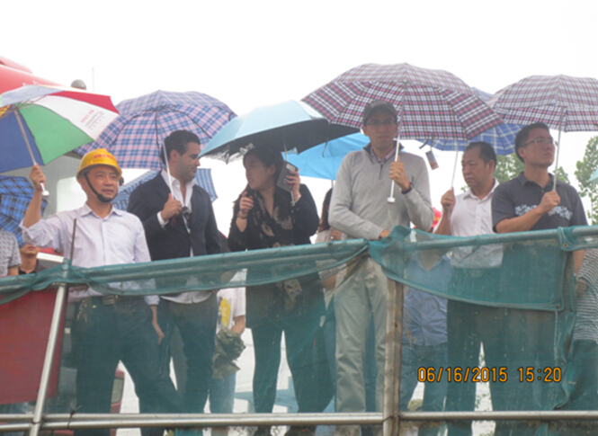 6月16日下午,世界银行、港投集团、临泉县地方政府等一行领导冒着暴雨莅临杨桥船闸扩建工程项目检查工作。