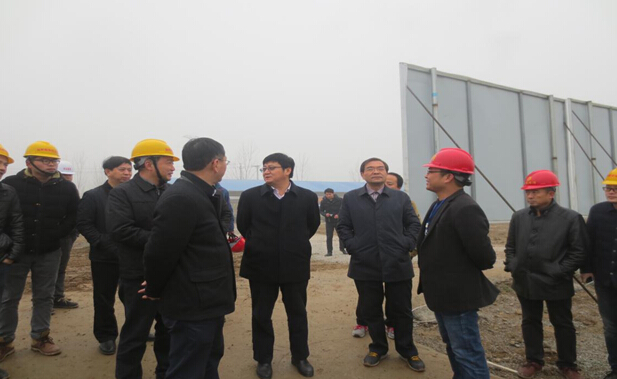 12月24日上午,安徽省交通运输厅党组成员、巡视员罗宁、省质检局副局长、纪委书记卞国炎、港投集团董事长李家俊、港投集团副总经理王灿一行在临泉县县长梁永勤、项目办主任汪能文陪同下莅临杨桥船闸项目部检查指导工作。