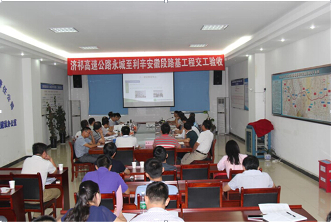 8月19日上午,在安徽省亳州市涡阳县建设办一楼会议室召开济祁高速公路永城至利辛安徽段路基工程交工验收会议。安徽交通控股集团公路建管公司副总经理苏新国、质监局副处长王乐远等领导到场参加会议。会上,设计单位、施工单位(路基07标)、监理(路基一办)、检测单位代表分别进行工程总结发言。