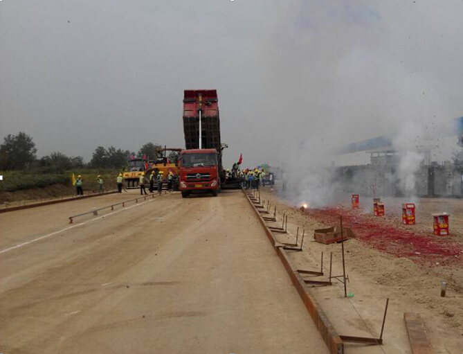 9月15日上午9点,随着一阵清脆的爆竹声和礼花轰鸣声,S312天釜路改建II标项目部的水稳试验段正式拉开了摊铺序幕。标志着天釜路即将全面进入路面基层施工新阶段。