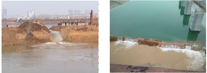 2016年1月12日,浍河固镇复线船闸01标破除下游围堰进行试放水,进行上游围堰破除试放水。