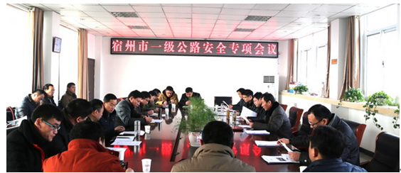 2月1日上午,宿州交通投资集团有限公司召开2016年第一次宿州市一级公路安全生产专项会议,通报2015年全市一级公路建设安全生产工作,安排部署2016年重点工作任务,各参建单位项目经理及专职安全员参加会议。会议由宿州市交通投资集团有限公司副总经理朱鹏主持。