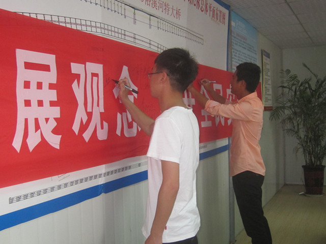 活动过程中,项目部技术负责人带领大家宣读了誓词,结合大桥工程的实际情况,指出了项目安全质量工作中的难点、重点,对项目全员进行了一次安全质量现场教育。