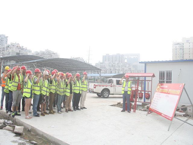 活动仪式上,凌经理带头宣誓,项目部全体职工举起右拳,以饱满的精神状态庄严宣誓,道出了每位员工对安全生产和保护自身安全的庄严承诺,标志着在以后的生产工作中,铜陵路高架项目所有成员将安全红线意识进行到底的决心。