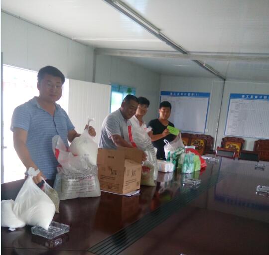 进入夏季以来,涡阳地区多热少雨,为保障高温天气和强紫外线工作环境下广大员工的身体健康,体现工会“职工之家”的温暖,7月14日,安徽路港S202(涡阳段)路面改善工程02标项目部工会为一线工人发放了绿豆、白糖、人丹、藿香正气口服液、风油精等防暑降温物品,并向大家宣传了夏季防暑降温常识,确保工人的身体健康和安全施工