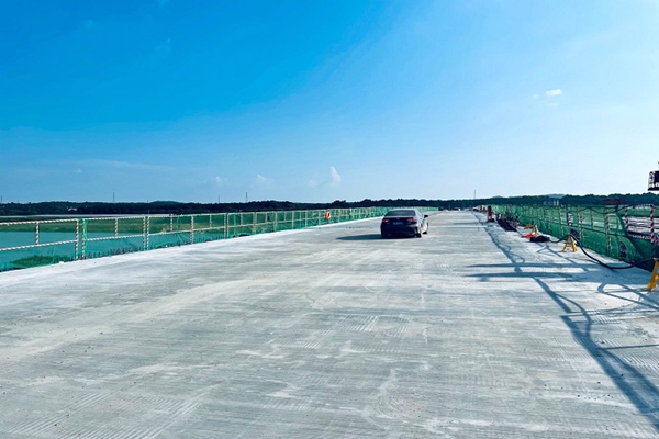 工程连接线全长3152m,是通往太湖高铁站的重要通道,为确保高铁年底顺利通车,项目部增加大型机械,克服高温天气影响,全力推进工程建设。截至9月底,连接线已具备半幅通车条件。