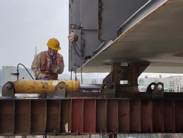 日前,由安徽路港承建的文忠路高架桥01标项目主线桥第10联钢箱梁,在合肥市运营地铁3号线车站上顺利完成横向精准滑移,为全线践行“安徽精度”,保障高架桥及地铁安全运营迈出了坚实一步。