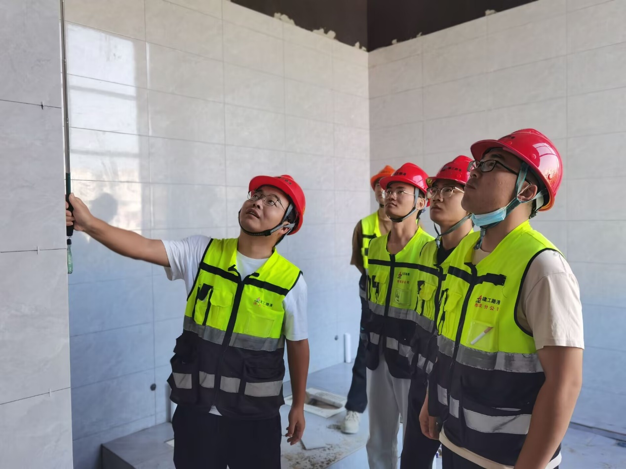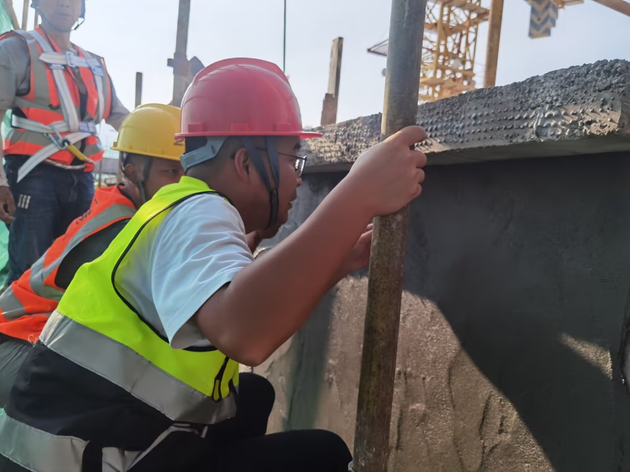 项目建设过程中陈富打交道最多的就是项目上这一批年轻的技术员们。在年初主体结构冲刺的关键时刻,面对项目部房建施工为空白的“门外汉”技术员们,陈富的心里犯起了嘀咕,怎样才能做到既带好学生,又能做好现场和内业的全盘管理。在与项目经理沟通后,他白天在现场当起了手把手的实践老师,晚间例会上又成了专业“教授”。“咱们部门这些同事,有不懂的技术问题都问他。”项目技术员邵财笑着说道。他们跟着陈富看图纸、学规范、进行现场实操。过程中当陈富被同事们问到不懂问题的时候,便在业余时间自学钻研,先把问题吃透,再结合现场情况进行讲解和复盘,带领同事们将新知识学深悟透,并应用到实际工作中,解决项目的实际问题。
