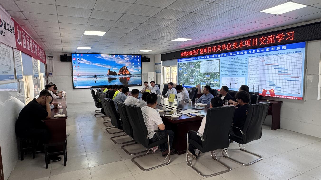 4月17日,明光市交通运输局组织江苏海通S209改扩建项目相关负责人及技术人员来访建工路港G104三标段项目开展实地交流学习活动。