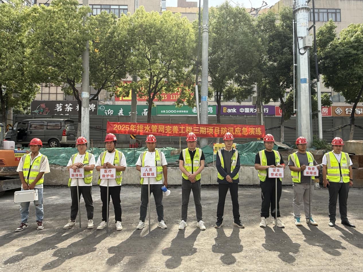 近日,建工路港排水管网完善工程三期项目组织各参建单位开展了防汛应急实战演练,旨在以练备战,全力做好汛期安全防范工作。