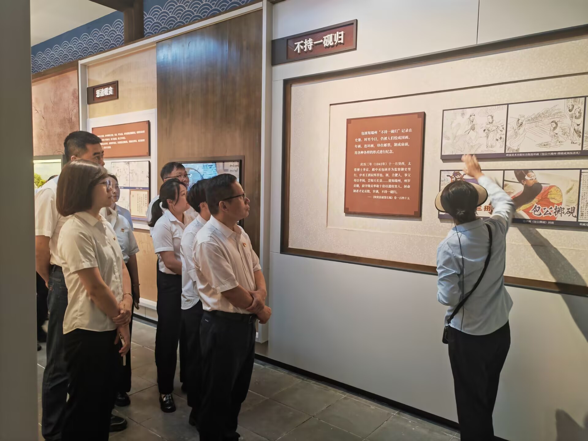 党员们在讲解员的带领下依次参观了包公故居、孝肃阁、包公书院等核心展区。大家通过历史典籍、影像资料、现场实物等,详细了解包拯刚正不阿、铁面无私的生平事迹,感受包拯身上凝聚的“孝、廉、智、正、忠”等优秀品质。