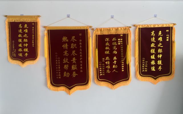 近日,建工路港公司徐淮阜高速小修养护项目部接连收到群众送来的四面锦旗,“危难之际伸援手 高速救援暖旅途”“尽职尽责服务 热情高效帮助”等滚烫字迹,既是车主对救援工作的由衷认可,更是小修养护团队用专业与坚守换来的硬核荣誉,也是团队践行“保通保畅、为民服务”初心的生动见证。