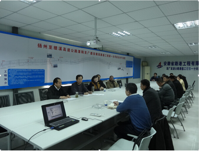 2月12日上午,公司董事长李振标在党委副书记马斌、副总经理汪崇龙的陪同下,赴溧广高速01标调研。项目办主任徐静、安徽高速监理公司副总经理杨冬林应邀参加了调研会议。