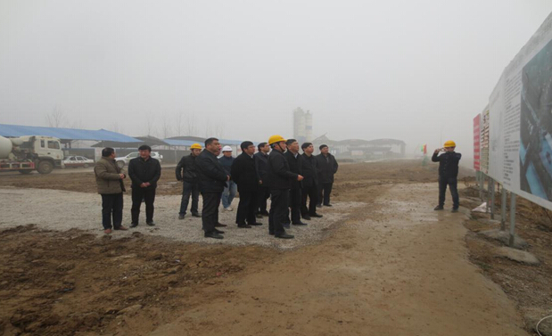 12月24日上午,安徽省交通运输厅党组成员、巡视员罗宁、省质检局副局长、纪委书记卞国炎、港投集团董事长李家俊、港投集团副总经理王灿一行在临泉县县长梁永勤、项目办主任汪能文陪同下莅临杨桥船闸项目部检查指导工作。