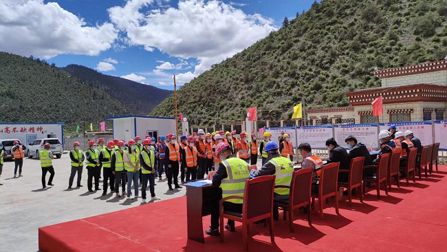 除了气候恶劣,项目还面临着超长战线和交通险要、洪水、疫情、地方拆迁与协调等难题,致使本就难得的施工条件稍纵即逝,项目适时组织开展“抓管理、促进度、重质量、保安全,大干100天,全力保障川藏铁路建设”劳动竞赛活动,凝聚力量,共克时艰。9月上旬,G349郭庆至洛隆段圆满完成了10座桥梁的梁板安装施工,9月下旬保证了TBM安全顺利通过郭庆至洛隆段。率先实现桥梁通车和主线路基交验,确保施工任务达产超产。既保工期又保质量是打造精品工程的基本要求,施工过程中要注意保护当地生态环境,坚持冰山雪山也是金山银山的理念,建设美丽西藏。项目自开工以来,多次迎来国家、自治区等各级单位检查指导,赢得了监理、业主、政府部门的普遍赞扬与认可。