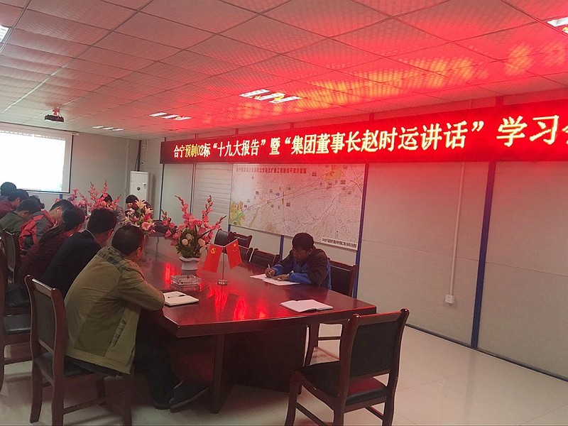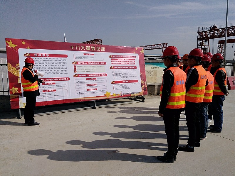 项目党支部专门制定了学习十九大精神的学习计划,将《党章》、《十九大报告单行本》、《十九大报告辅导读本》等发放到党员干部手中。在项目部驻地醒目位置专门设立了十九大精神宣传展板,在宣传栏张贴了十九大相关学习资料,多措并举营造学习氛围,推进学习工作,学习好、宣传好、贯彻好党的十九大。