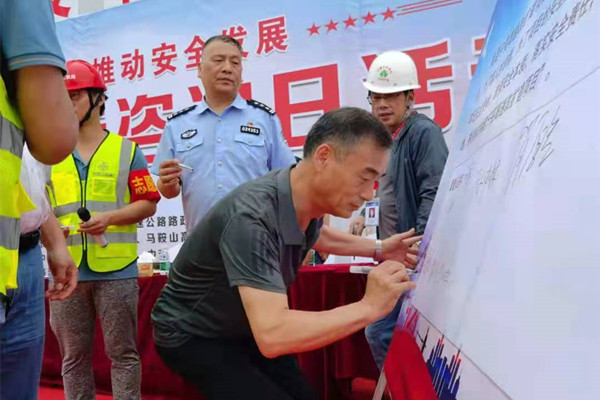 最后,项目办主任带领参建单位人员进行安全生产宣誓和誓言签名,参建各单位承诺,齐心协力共建宁芜高速改扩建项目,努力打造“平安百年品质工程”。