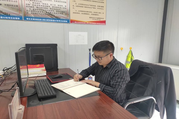 徐海东自2010年7月毕业后就进入安徽路港公司,已坚守岗位12年,他说:“我的单位观是不忘初心,方得始终,这也是我作为党员的承诺”。该项目部建设初期面临着“工期紧、任务重、专业人员偏少”的情况,分公司领导希望施工技术经验丰富的他可以到这个项目做技术负责人,时任第一分公司工程部部长的徐海东二话没说就同意了。从项目建设初期,项目策划、项目成本测算、招投标开始就身亲力行,在进度、技术、安全和质量方面抓重点把方向,如通过注重四新技术的应用抓亮点创特色,利用本项目的科研项目“非承重式加筋土桥头技术的应用”创建一批工法和专利,同时该项目也是作为“平安百年品质工程”第一批入围单位。工作之余,他还努力加强自身专业知识的学习,目前已经通过一级、二级建造师,正在进行注册安全工程师及造价工程师的学习。他说:“路漫漫其修远兮,吾将上下而求索。他坚信通过个人和集体的努力,公司的未来会越来越好”。