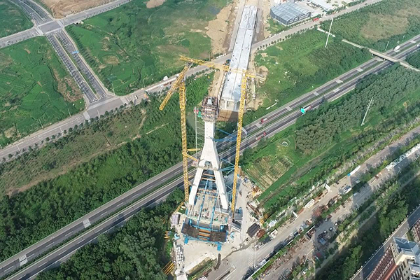 该工程也是公司承建的第一座高塔斜拉桥,建筑高度107.8米,是公司在建项目中桥梁最高的项目,技术难度大、施工工艺十分复杂。该项目在公司内率先使用液压爬模、前支点挂篮、高塔拉索等工艺施工,开创了公司范围内此类施工工艺的先例,同时在大型钢锚箱高空精确安装、塔柱线性和索导管空间精确定位等技术难点上提供了丰富的经验。