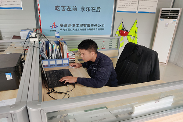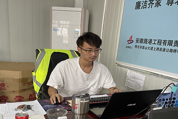 试验室杨啸从2018年毕业便进入公司,明光嘉山大道是他进公司的第一个项目。起初因为自己未取得检测员证书被批评,于是在年限达到后,一鼓作气在去年12月考取了道路工程助理试验检测师证书。因为是第一次接触工地试验室各项工作,所有对他来说都是新的,但是他从未想过放弃。白天跑现场做试验,半夜查规范看视频做资料都是家常便饭。杨啸说:“父母常教导我,要做一个有责任心有担当的人,现在还年轻要多学多问,要成为对家庭对单位对社会有用的人。”