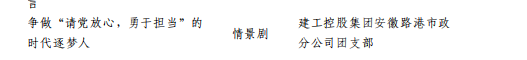 近日,共青团安徽省委下发《关于第五届全省“青年之家”优秀活动项目、全省优秀微团课及第一届全省优秀艺术团课评选结果的通报》。公司团委上报的《争做“请党放心,勇于担当”的时代逐梦人》、《中国青年》2项作品均荣获第一届全省优秀艺术团课二等奖。
