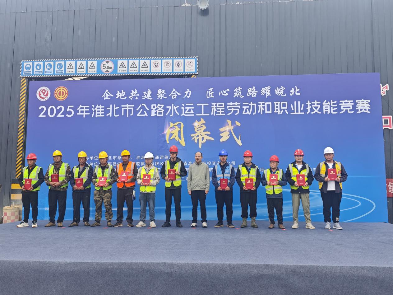 9月24日,建工路港公司沱浍河航道(李口至临涣段)整治工程施工04标项目积极参与2025年淮北市公路水运工程劳动和职业技能竞赛,一举夺得测量比赛二等奖与试验技能比赛三等奖,凭借精湛技艺斩获佳绩,在全市公路水运工程建设队伍中尽展风采。