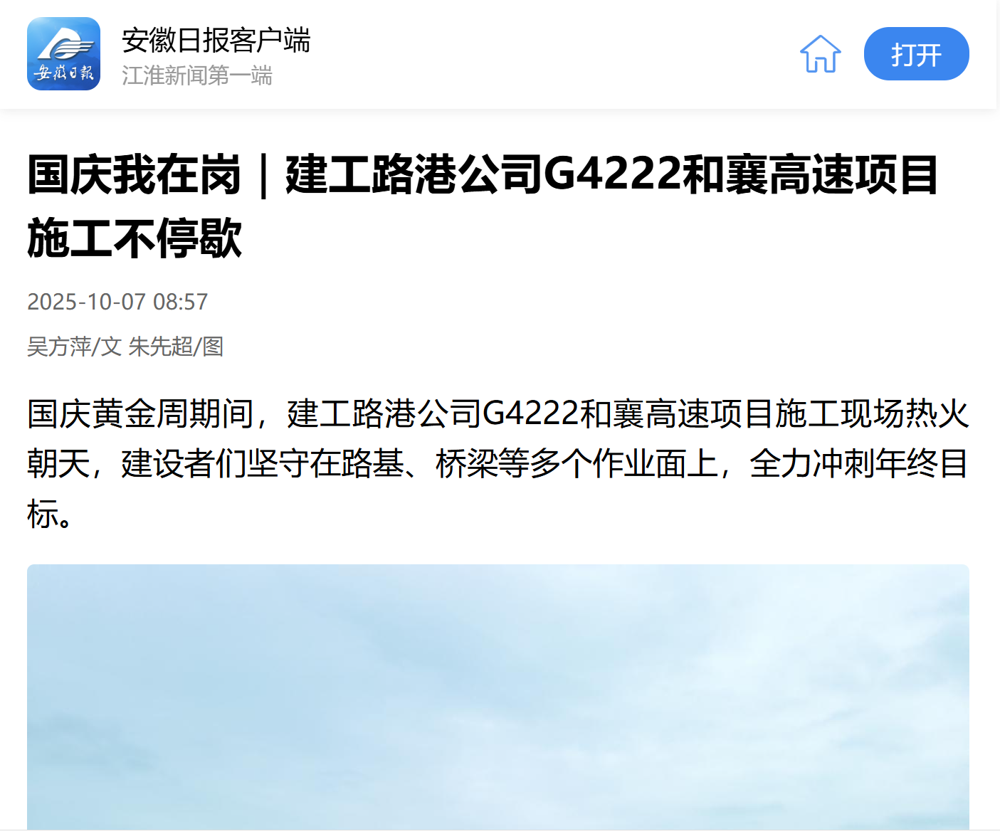 媒体聚焦丨安徽日报对建工路港公司多个项目“双节”攻坚大干进行报道